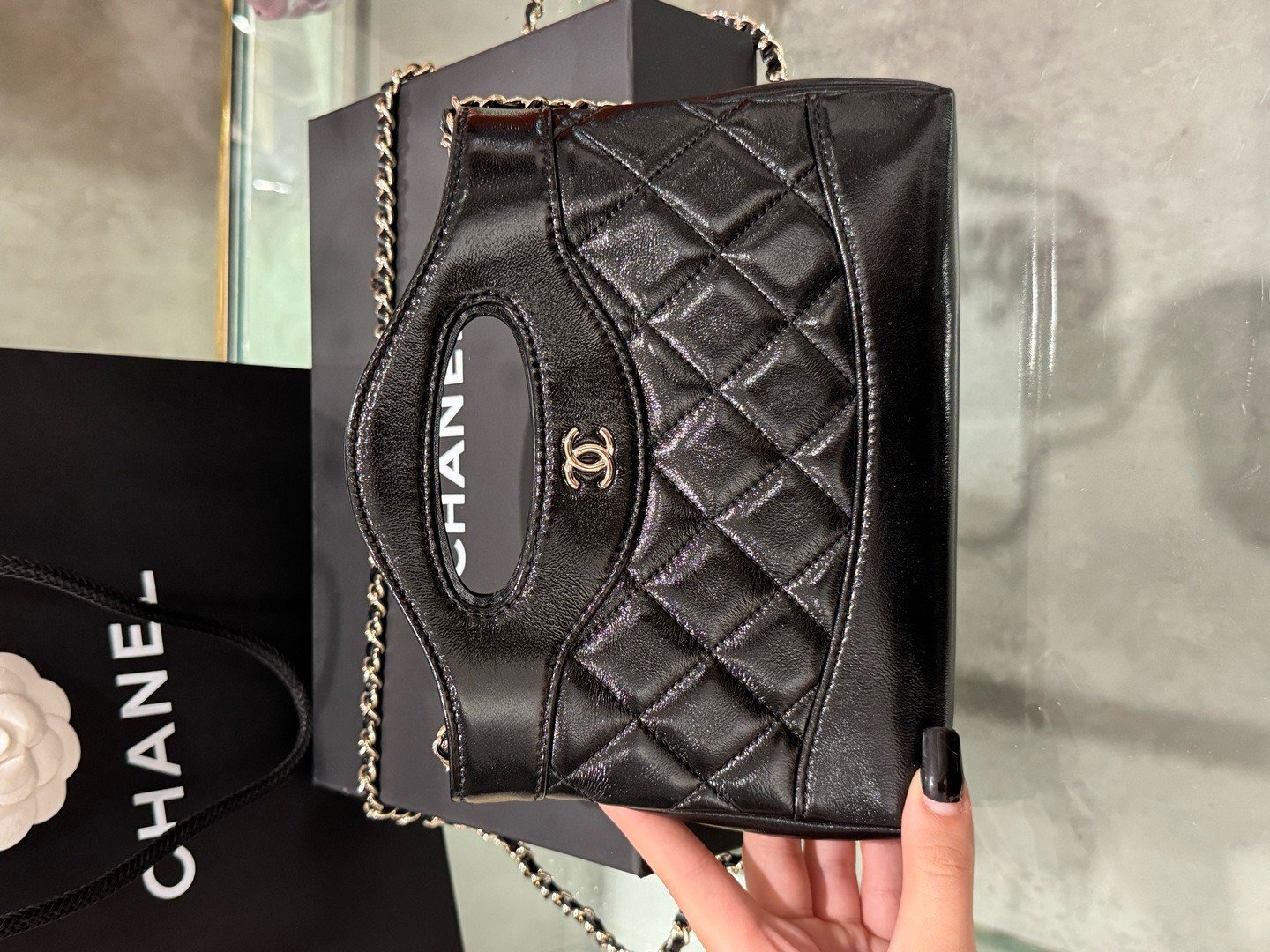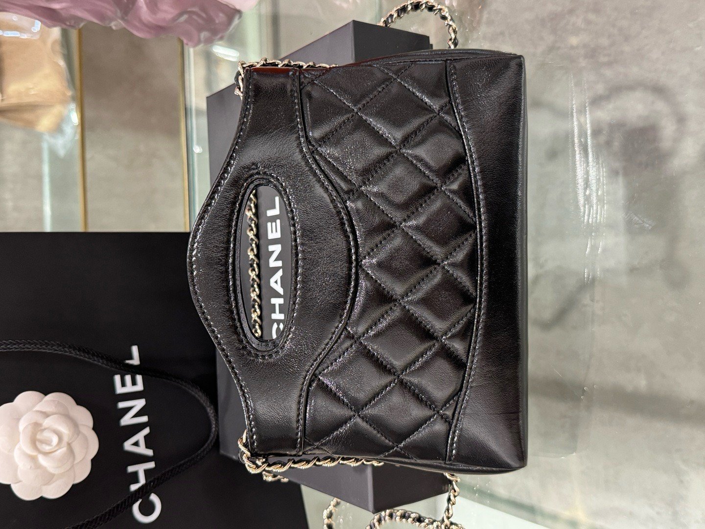 Chanel 31 Mini Women-s Handbag Black Cowhide Like Auth 20x14x4cm