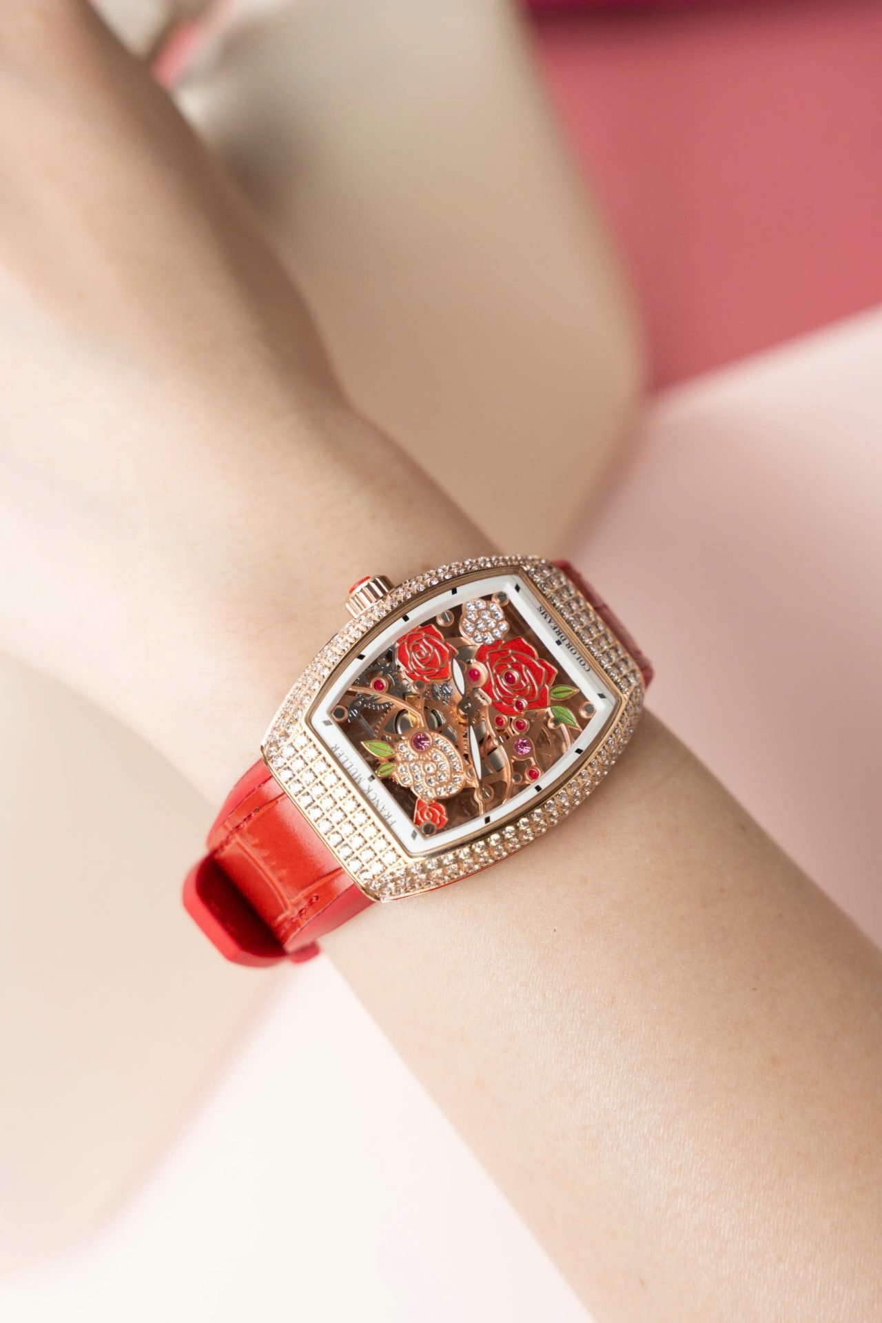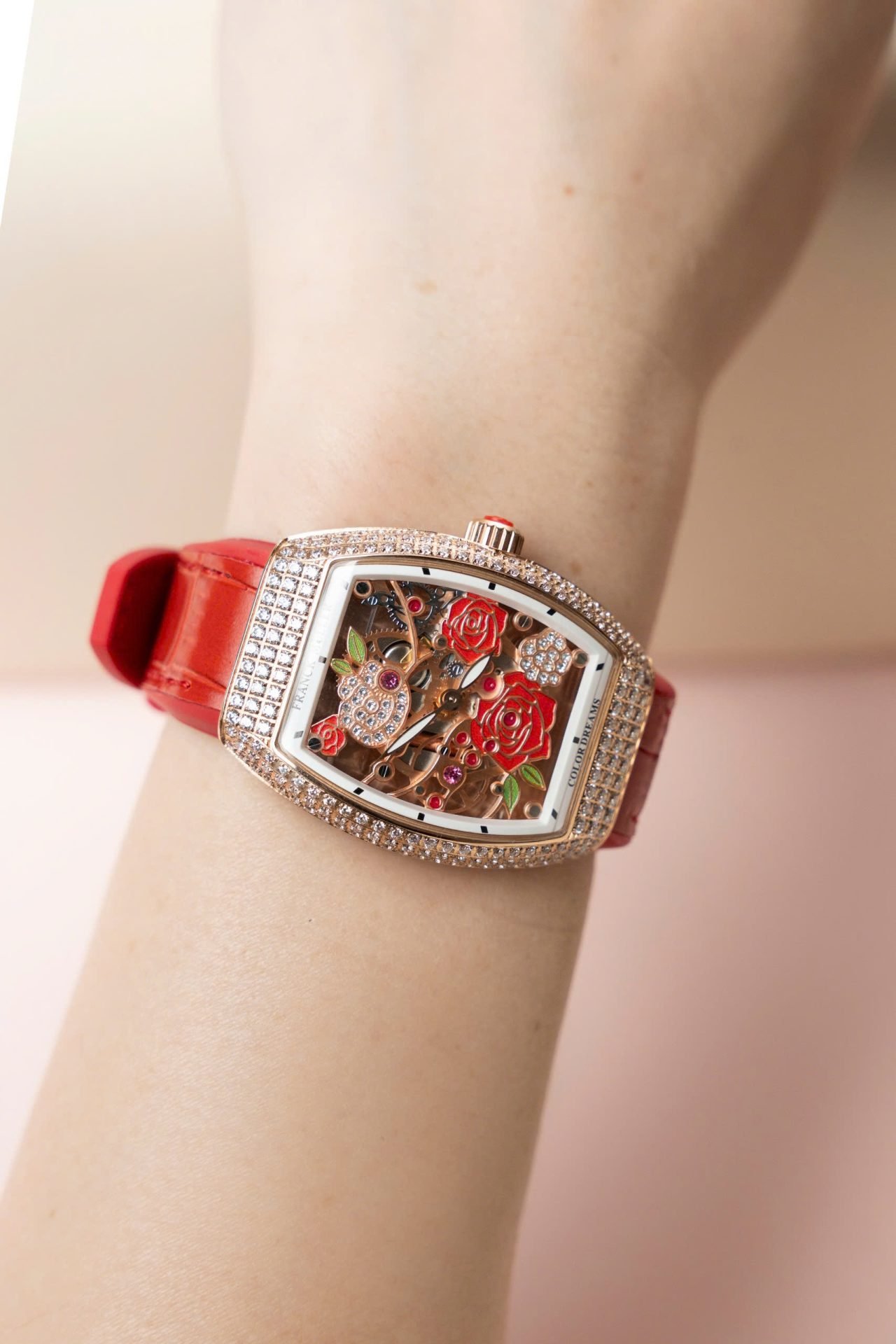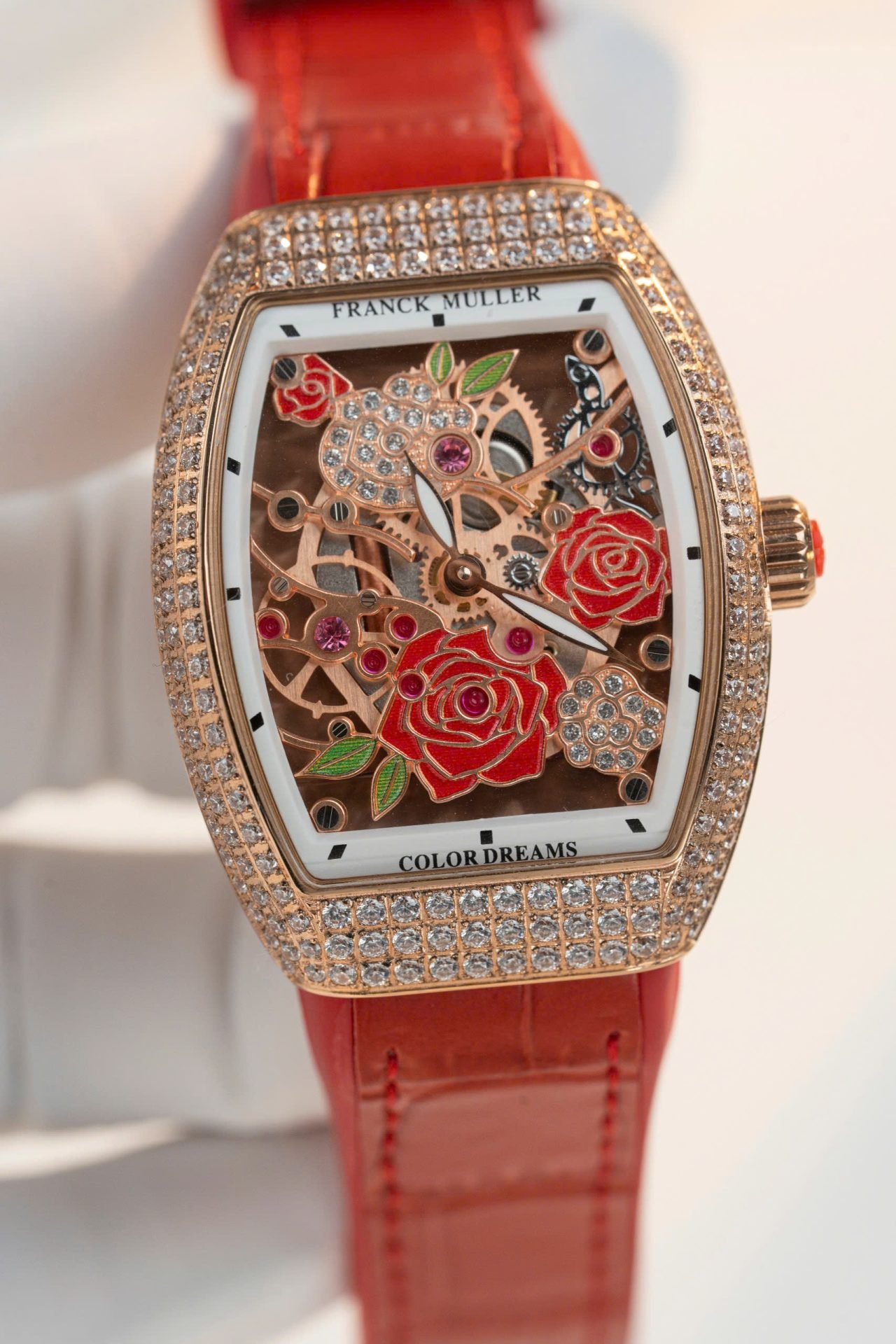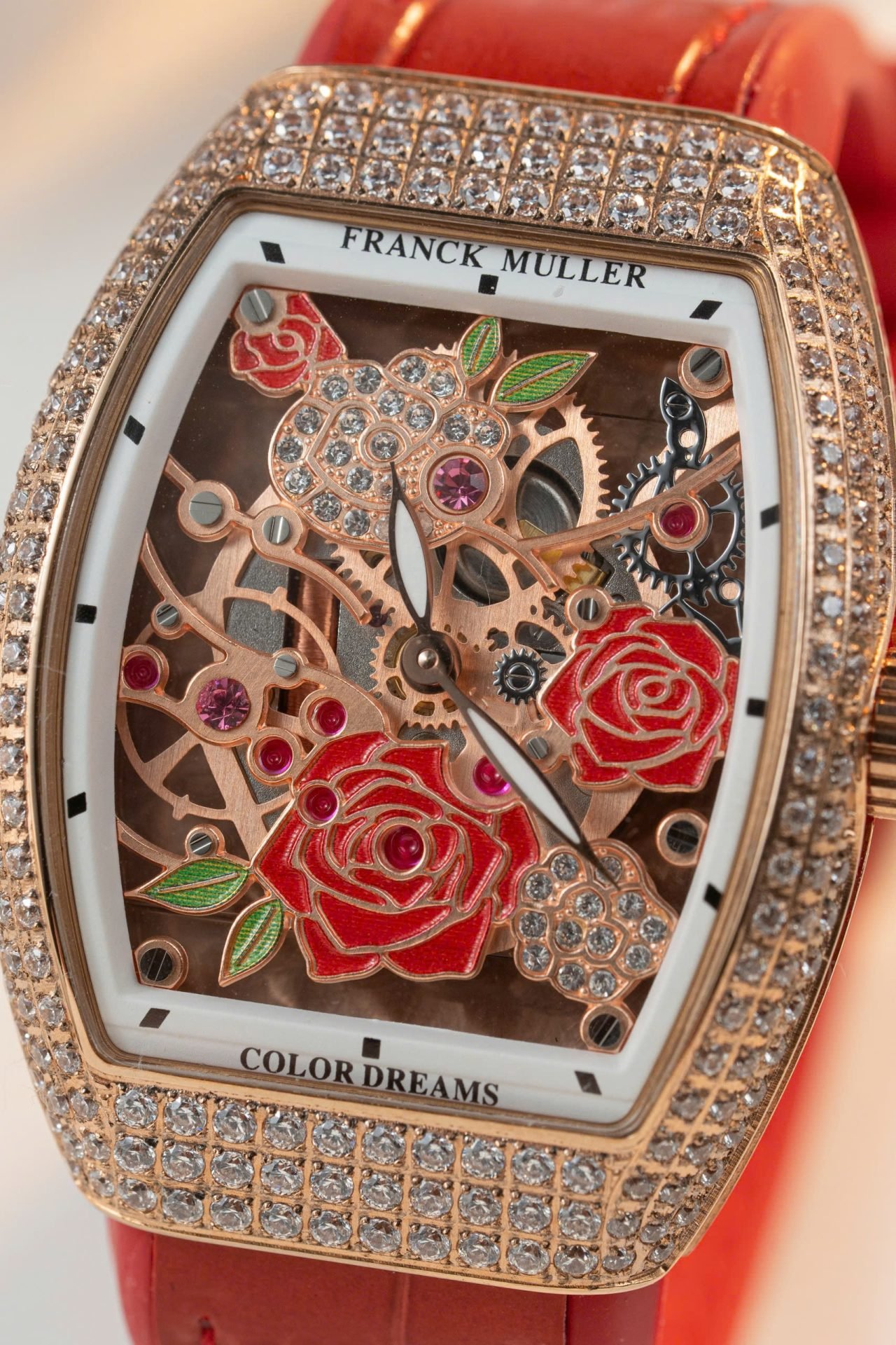 Franck Muller Replica Watch Vanguard V32 Skeleton Red Flower Dial 36mm